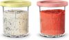 - WHAT'S INCLUDED: (2) 24oz. CREAMi Deluxe Pints, (2) Storage Lids in Coral and Yellow & Instruction Book.